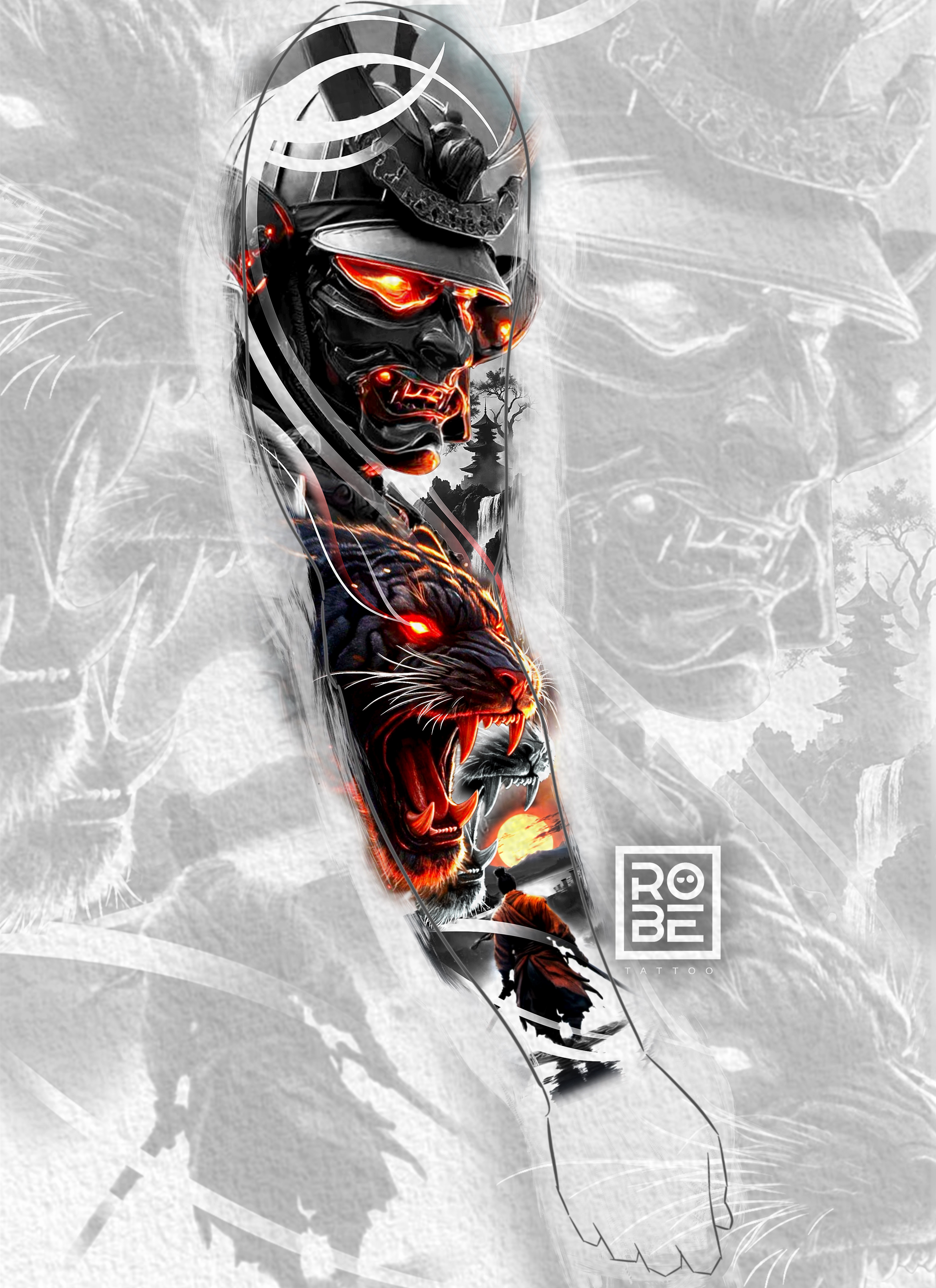 Represents the path of the warrior: mental control, instinct, and determination. The samurai embodies discipline, while the tiger represents raw inner strength. Together, they symbolize balance between mind and power.