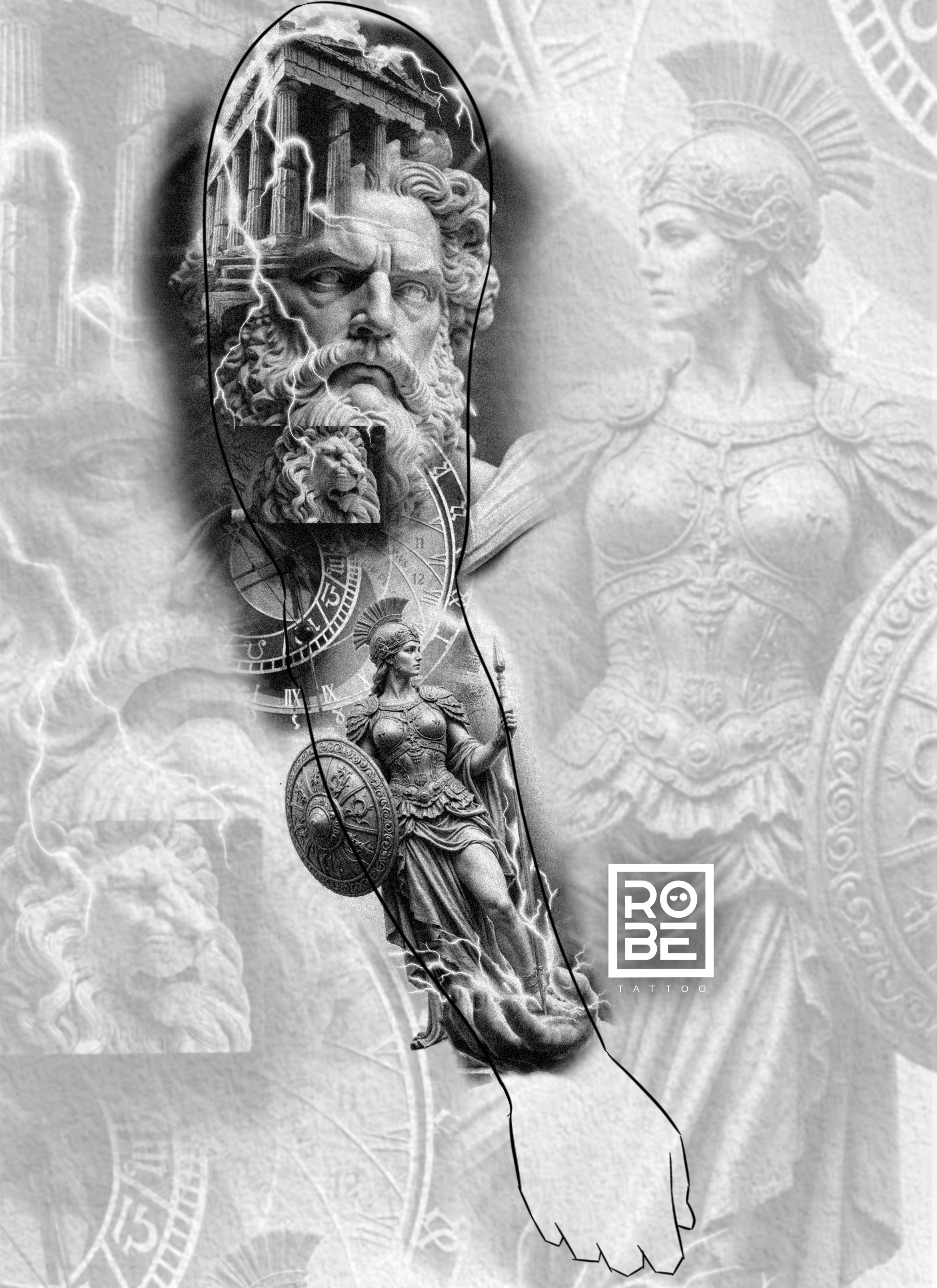 Represents divine authority, wisdom, and absolute power. Zeus embodies control over destiny, Athena represents strategy and intelligence, and the lion symbolizes strength and leadership.