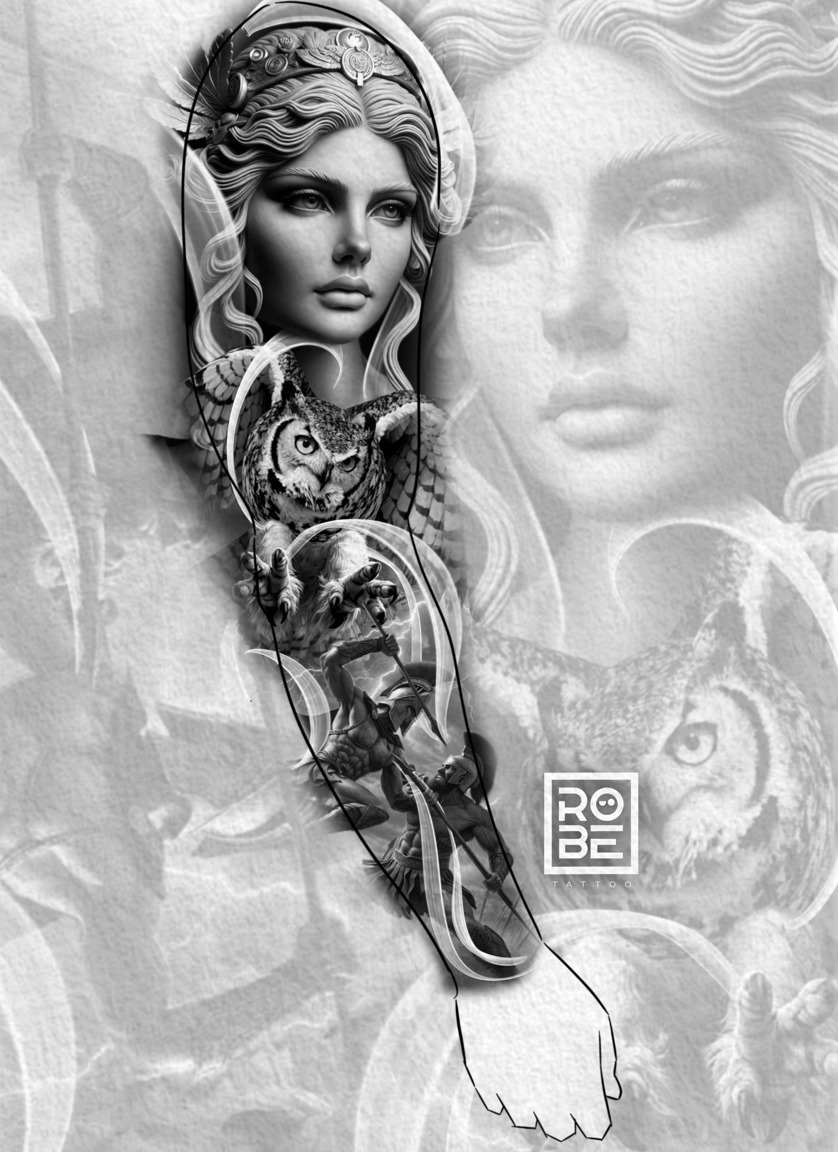Representa sabiduría, estrategia y conflicto interno. Atenea y su búho simbolizan inteligencia y visión, mientras los guerreros espartanos reflejan la lucha constante entre fuerzas opuestas: disciplina contra impulso, estrategia contra instinto.
